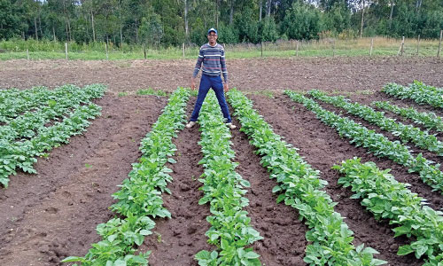 James Nderui is a young agripreneur who decided to become a seed potato producer after embracing the ARC technology. After attending a few forums organized by NPCK and being linked to strategic institutions in the subsector, James started creating partnerships and gathering relevant information for seed potato production. He received training on production and postharvest management and potato production from KALRO and CIP. Upon showing a lot of interest in ARC technology, he started attending training organized by Dr. Monica Parker of CIP, who introduced and refined the technology in Kenya and played a key role in its promotion. This training played a big role in knowledge building on ARC management after transplanting to the field. Kenya Plant Health Inspectorate Service (KEPHIS) carried out soil sampling for Rastonia solanacearum and Potato Cyst Nematode. After the soil tests results confirmed all-negative, he received the first ARC from Kenya Agricultural and Livestock Research Organization (KALRO) and transplanted them to a 15m x 10m plot. The resulting harvest was impressive. This led to the decision to go to commercial certified Generation 1 seed production. Currently, he targets to do 20 hectares each of two growing seasons.