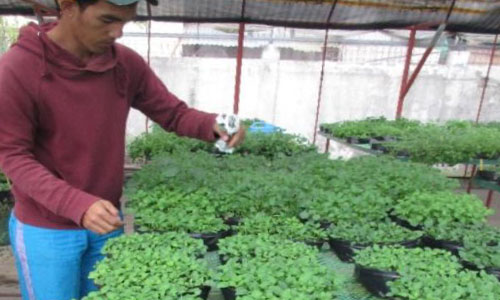 Nelio Compelio. He is a trained seed potato farmer and together with his son produces their own seed tubers and supplies it to their customers (farmers) through contract growing. He buys tissue cultured plants from BSU-NPRCRTC and establishes them as mother plants for ARC production. He does basic seed production in his 150sqm greenhouse built on the flat roof top of his house which prevents intruders from entering and allows strict sanitation practices. He claims that producing your own planting materials is cheaper and ensures better quality seed tubers compared to buying imported seed of the cv Granola. He has established himself as an excellent source of ARCs and his customers keeps coming back because they see the advantage of producing seed tubers from ARC.