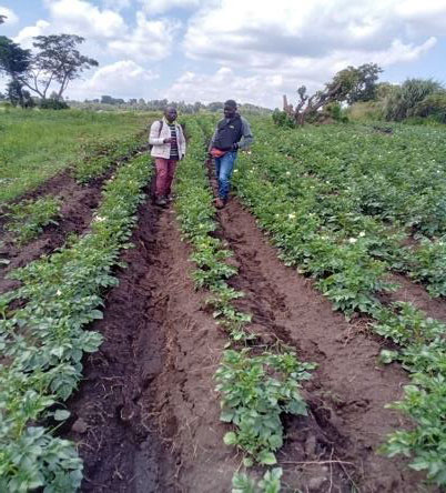 - ZODFA and Kilimo Kisasa staff doing joint monitoring of the performance of a new potato variety.
