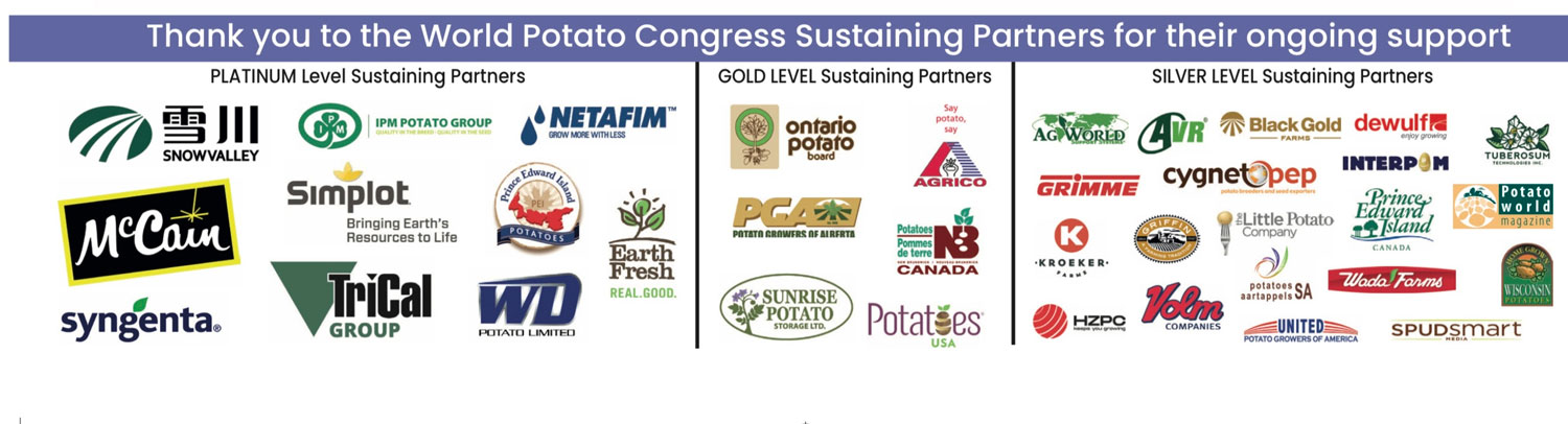 For information on the World Potato Congress Inc.’s Sustaining Partner program and how to become a Sustaining Partner, please visit our website at: www.potatocongress.org or email info@potatocongress.org